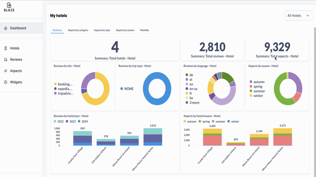 Blaze is an AI-based discovery tool that provides data analytics insights & statistics into previous guests' experiences by tapping into thousands of reviews from major booking sites, saving your hotel team and potential guests the hassle of sifting through endless reviews and websites.